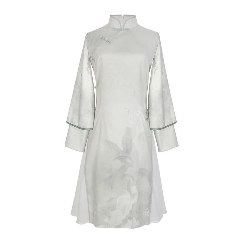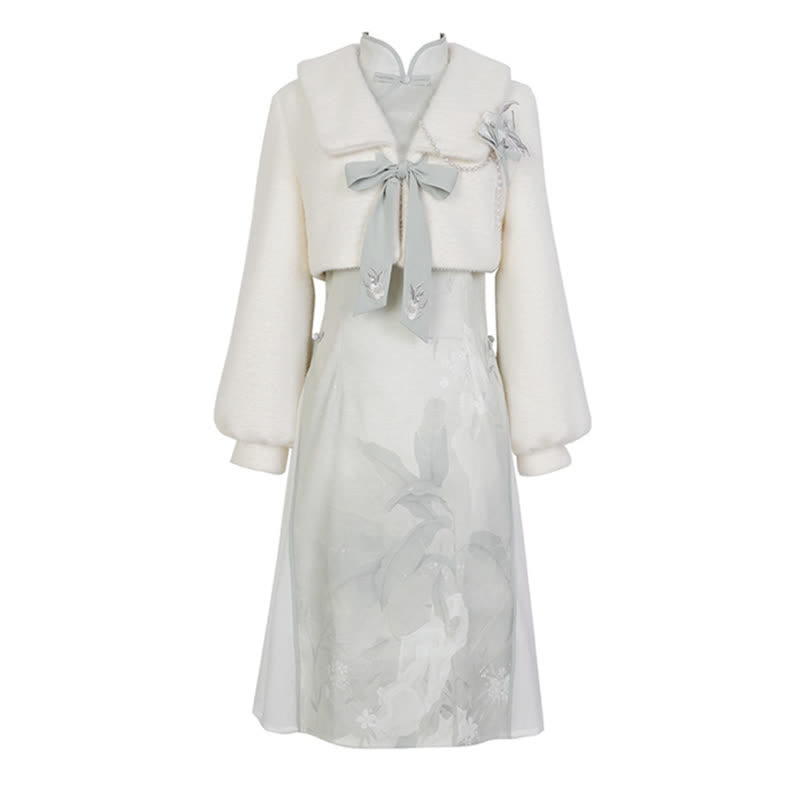 Elegant Floral Print Cheongsam Dress Coat Two Pieces Set