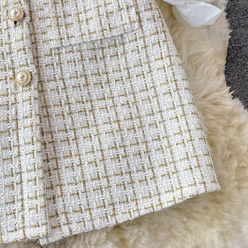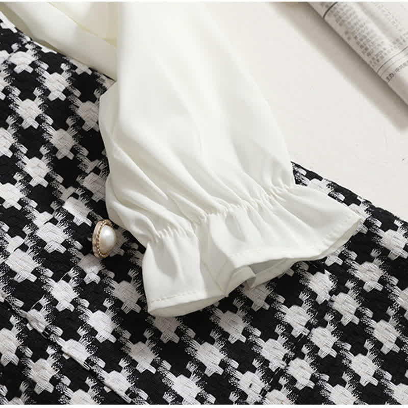 Elegant Plaid Slip Dress Lace Up Shirt Set