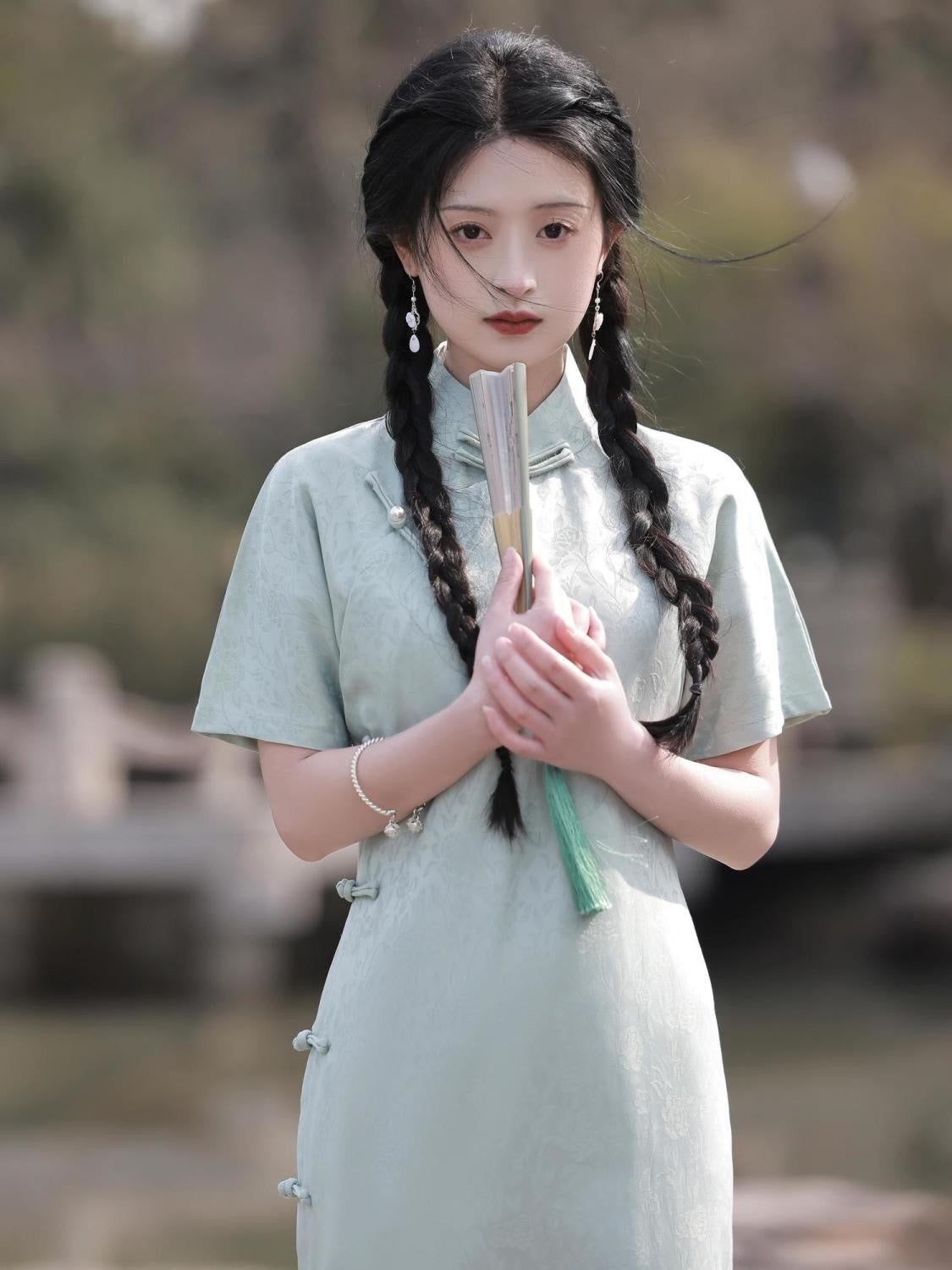 Elegant Satin Short Sleeve Cheongsam