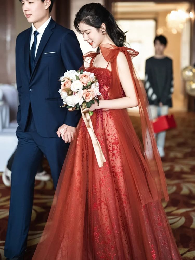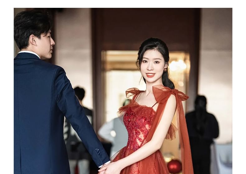 Embroidered Gown Sequin Evening Spaghetti Strap A-Line