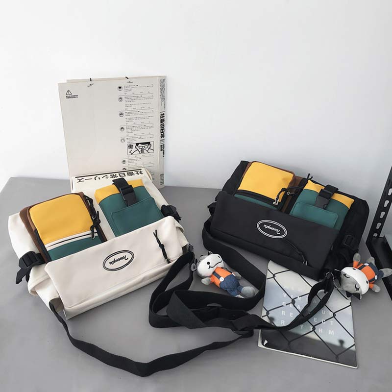 Fashion Colorblock Letter Print Canvas Crossbody Bag