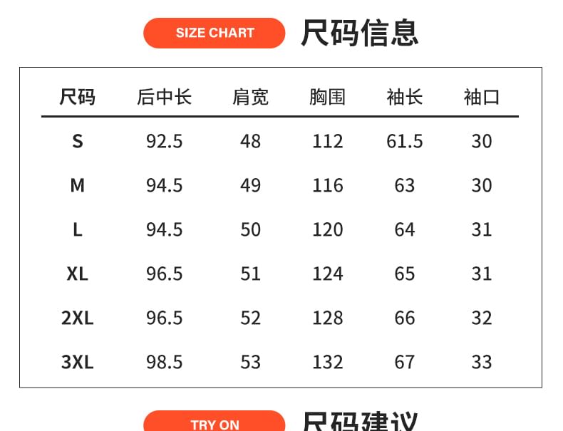 | Back Length | Chest | Sleeve Length | Shoulder Width | Cuff |
