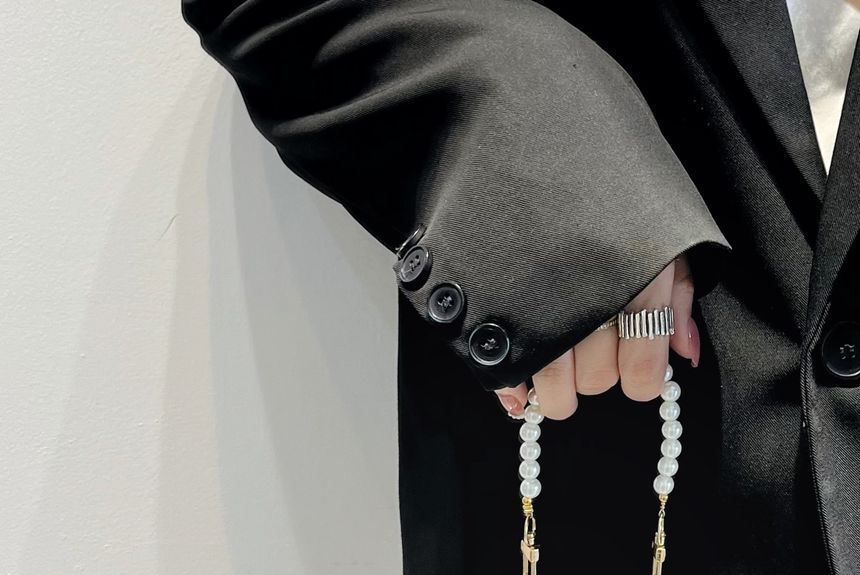 Faux Leather Elephant Charm Faux Pearl Strap Phone Case