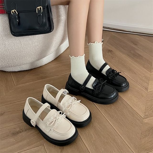 Faux Leather Ribbon Loafers