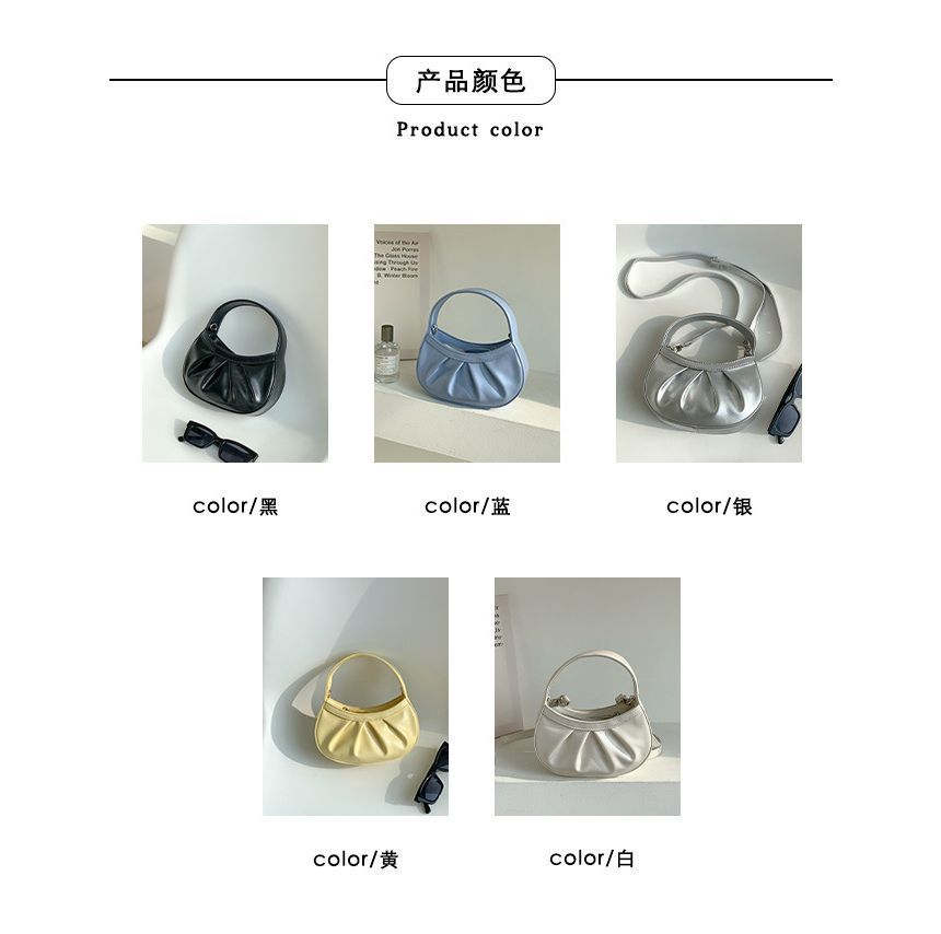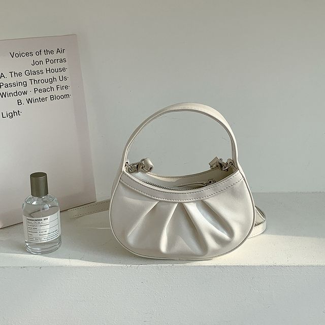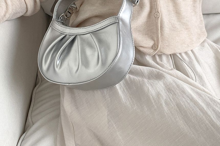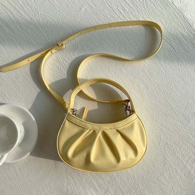 Faux Leather Shirred Crossbody Bag