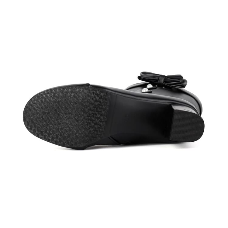 Faux Pearl Chunky Heel Mid-Calf Boots