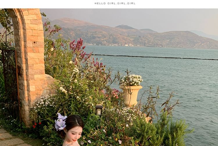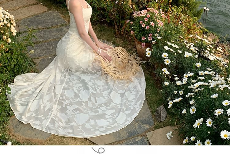 Floral A-Line Dress Jacquard Strap Maxi Spaghetti