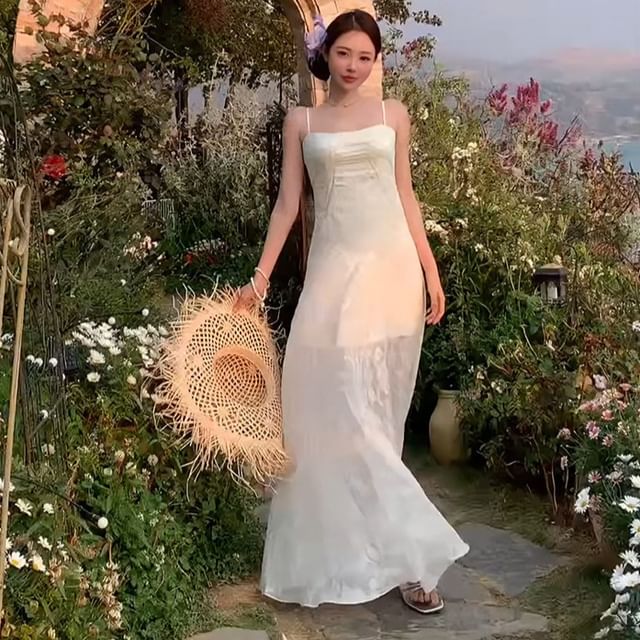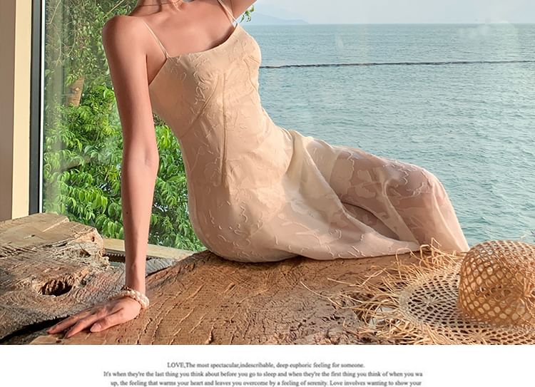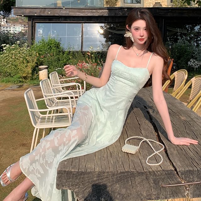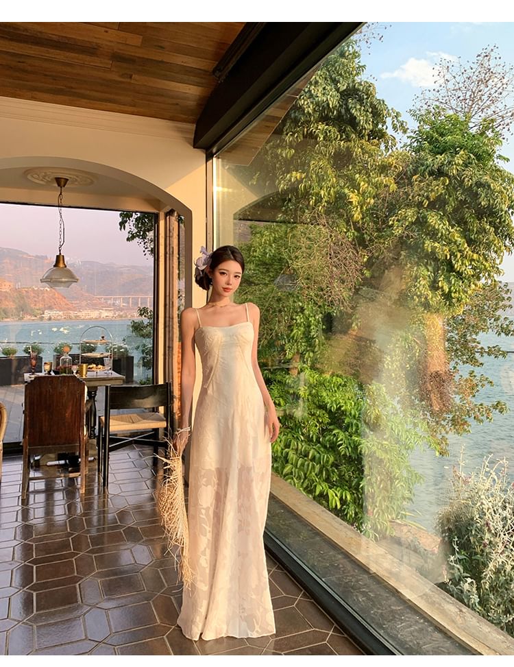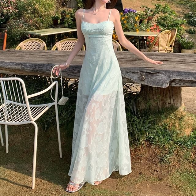 Spaghetti Strap Floral Jacquard Maxi A-Line Dress