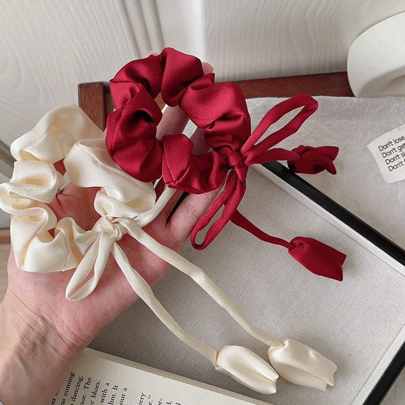 Floral Bow Satin Scrunchie