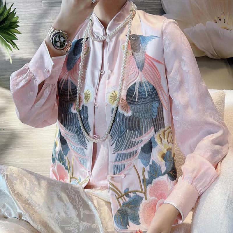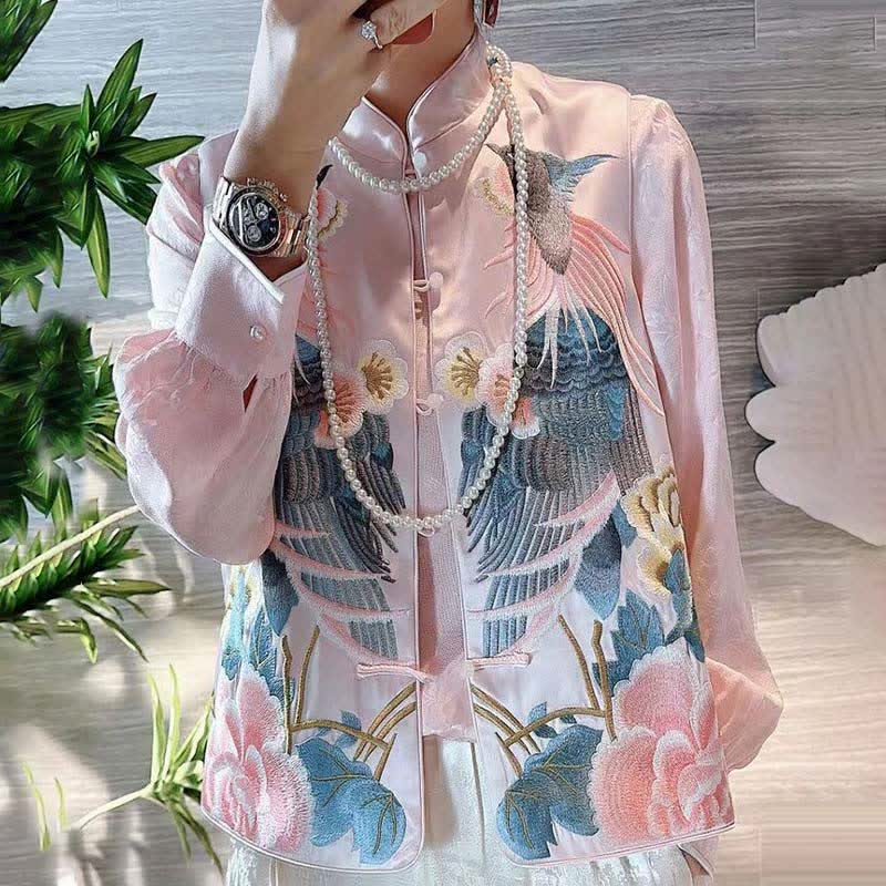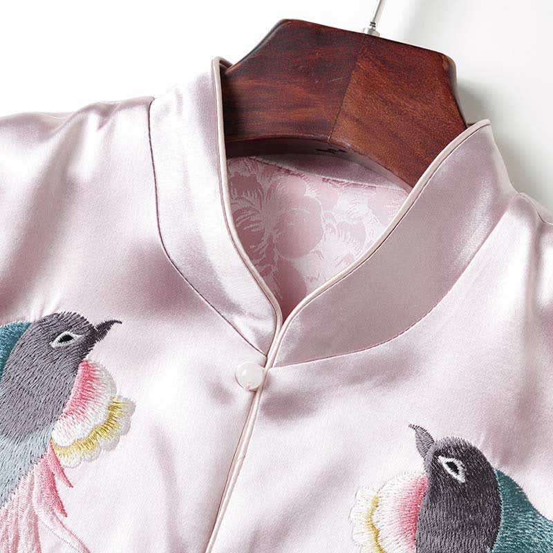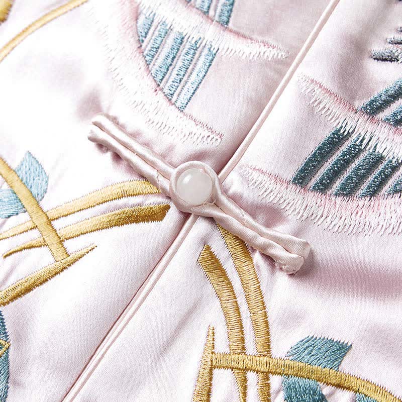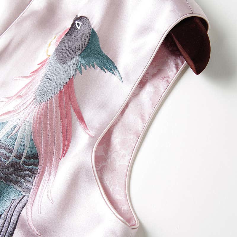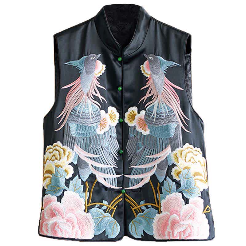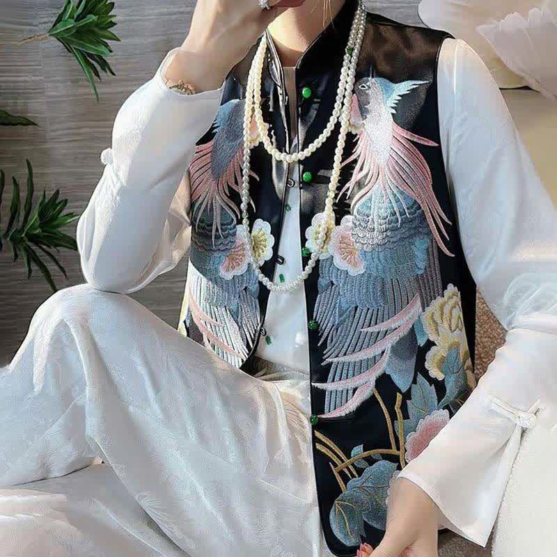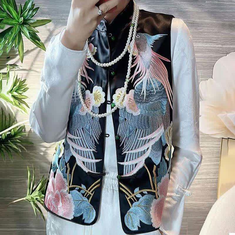 Floral Embroidery Buckle Sleeveless Satin Vest
