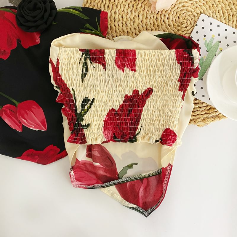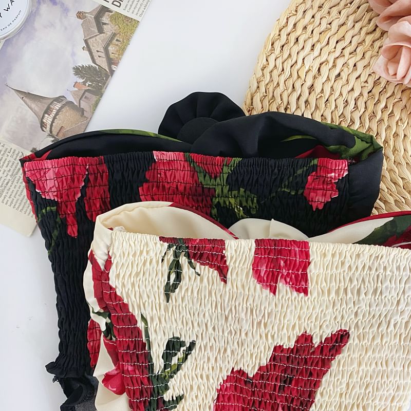 Floral Flower Accent Asymmetrical Crop Tube Top