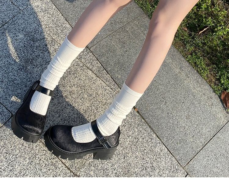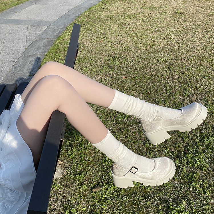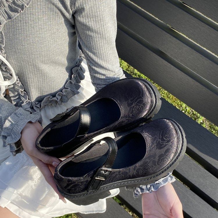 Floral Platform Chunky Heel Mary Jane Pumps