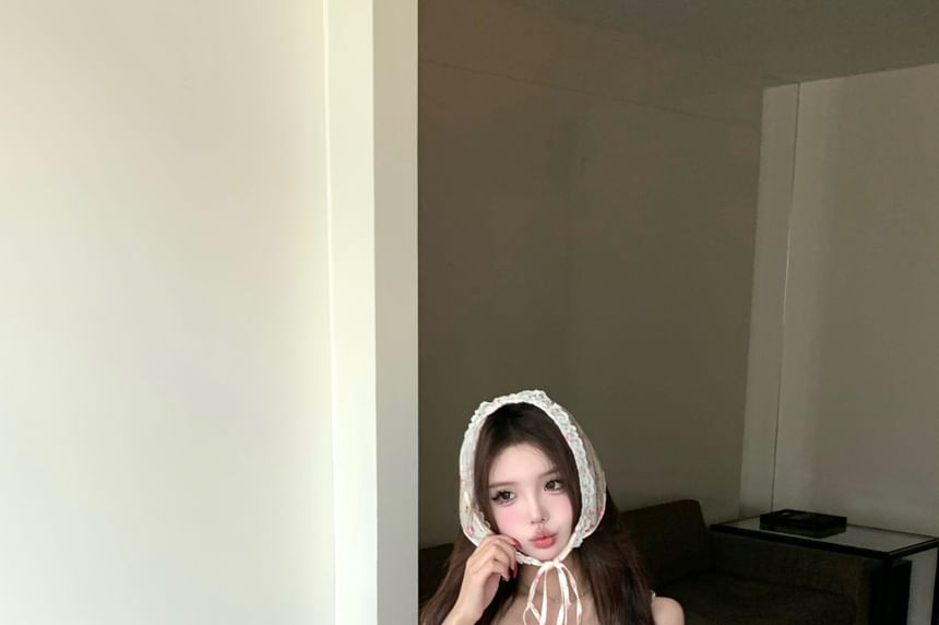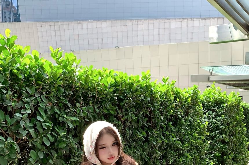 Floral Print Bow Frill Panel Crop Camisole Top / Elastic Waist Plain Bow Tiered Mini A-Line Skirt