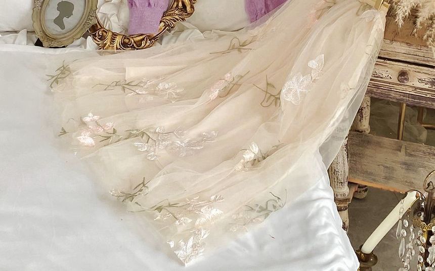 Flower Embroidered Mesh Midi A-Line Skirt