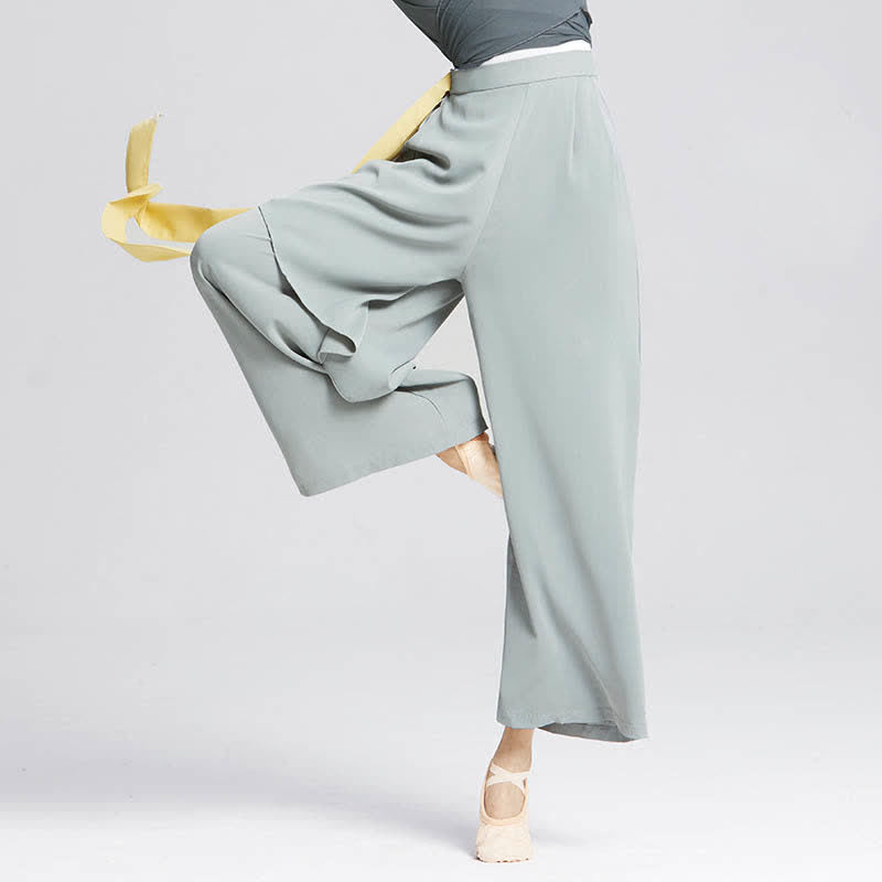 Flowy Ribbon Lace Up Wide Leg Pants