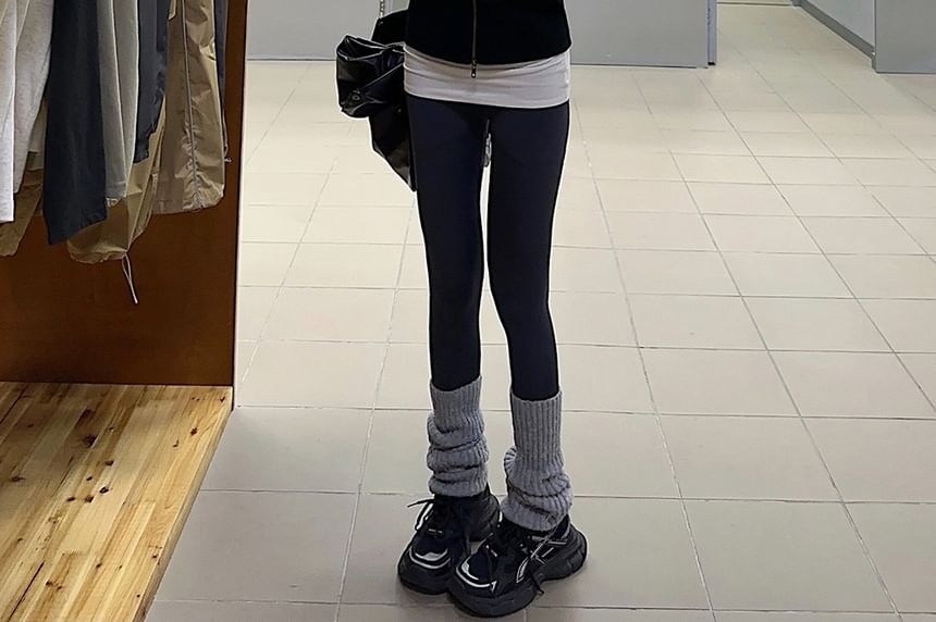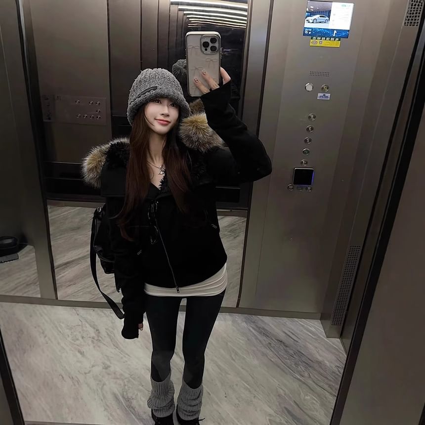 Fluffy Hooded Plain Zip Jacket / Mid Rise Plain Wide Leg Pants