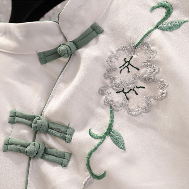 Sleeve Traditional Flower Shirt Long Print Skirt