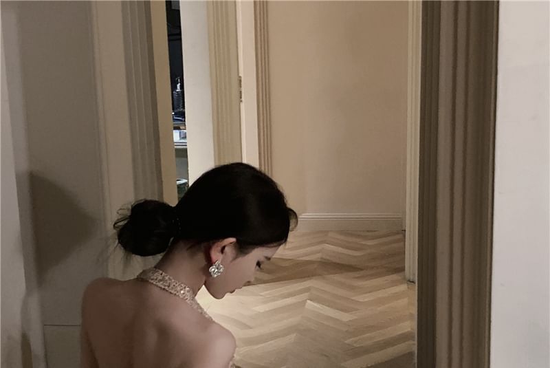 Halter Cowl Neck Plain Sequin Mermaid Evening Gown