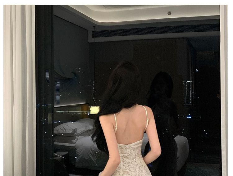 Halter Floral Lace Trumpet Evening Dress