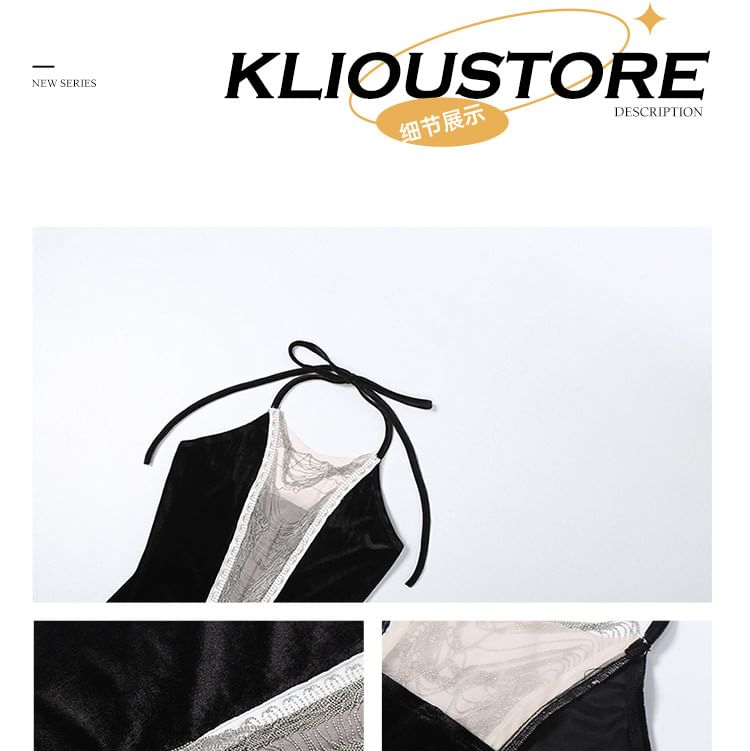 Halter Neck V-Neck Glitter Mermaid Evening Gown