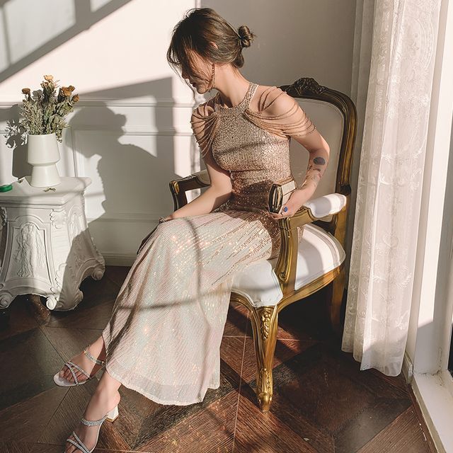 Halter Sequin Mermaid Evening Gown