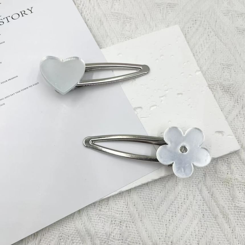 Heart / Floral Mirrored Alloy Hair Clip (Various Designs)