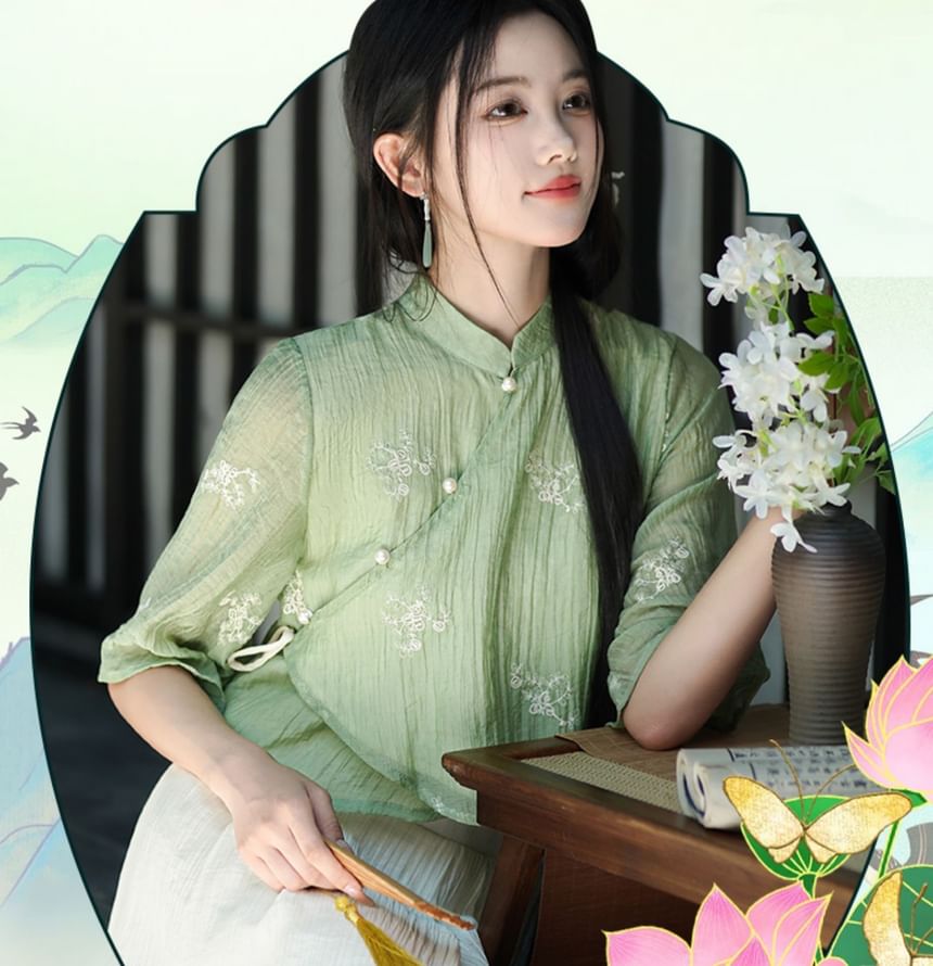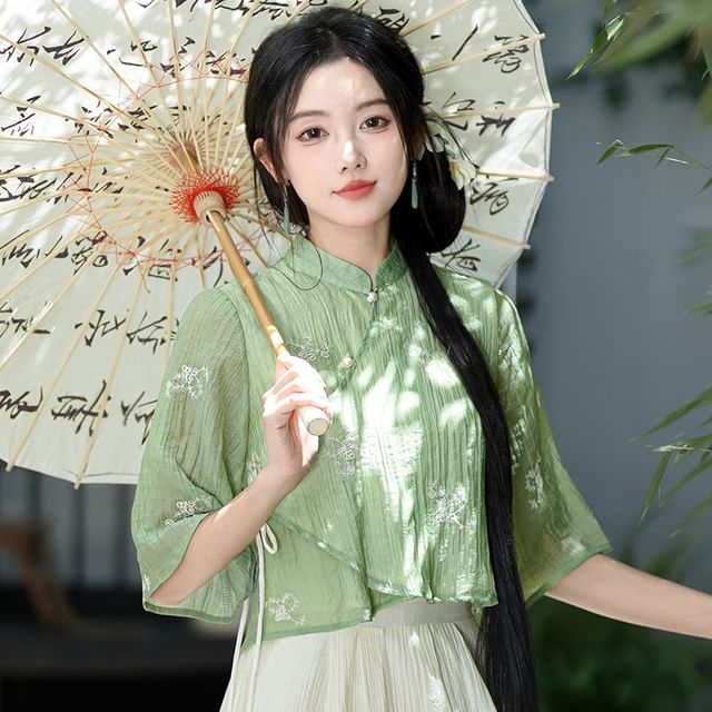 Sleeve Traditional Flower Shirt Long Print Skirt