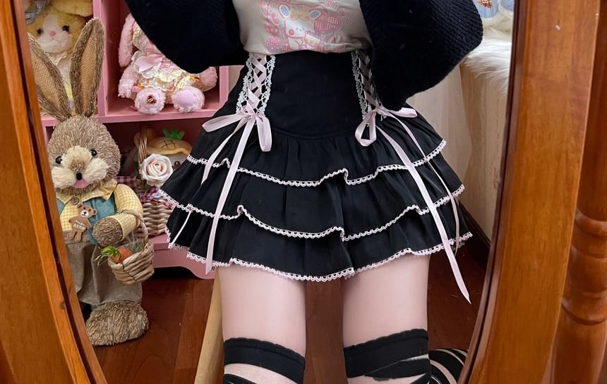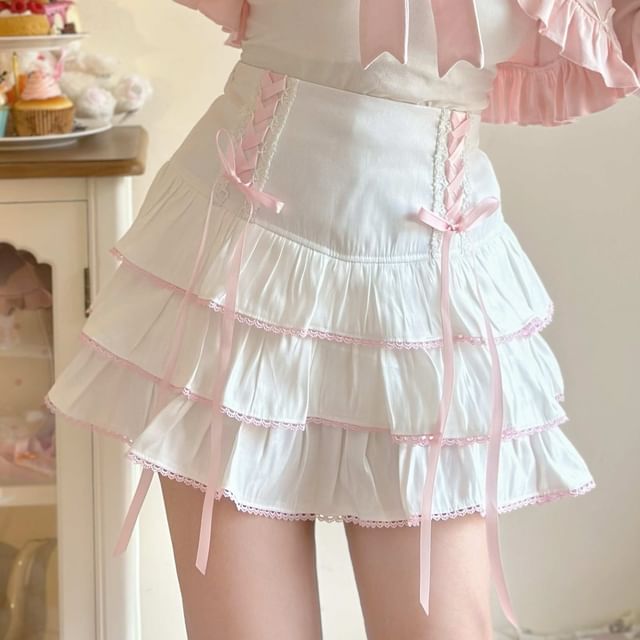 Skirt Waist Print Sweet Pleated High T-Shirt