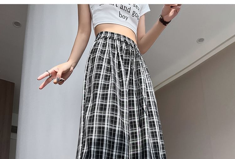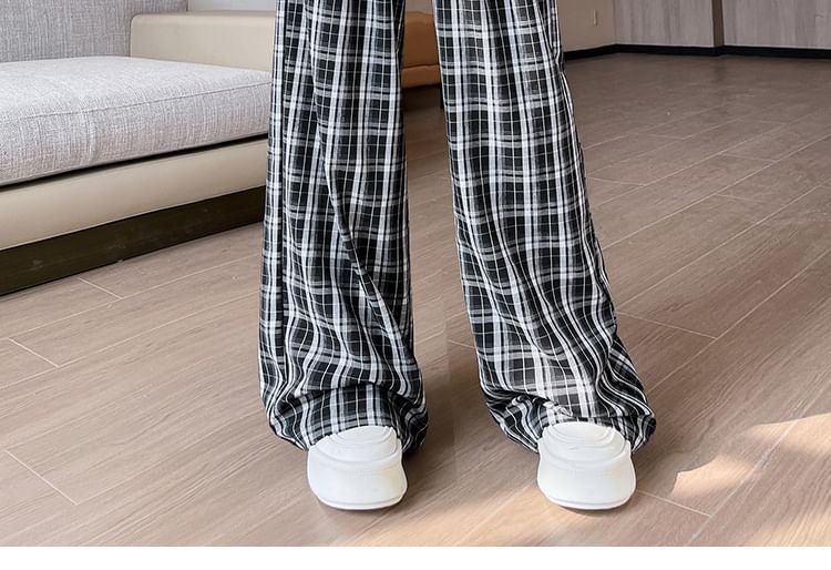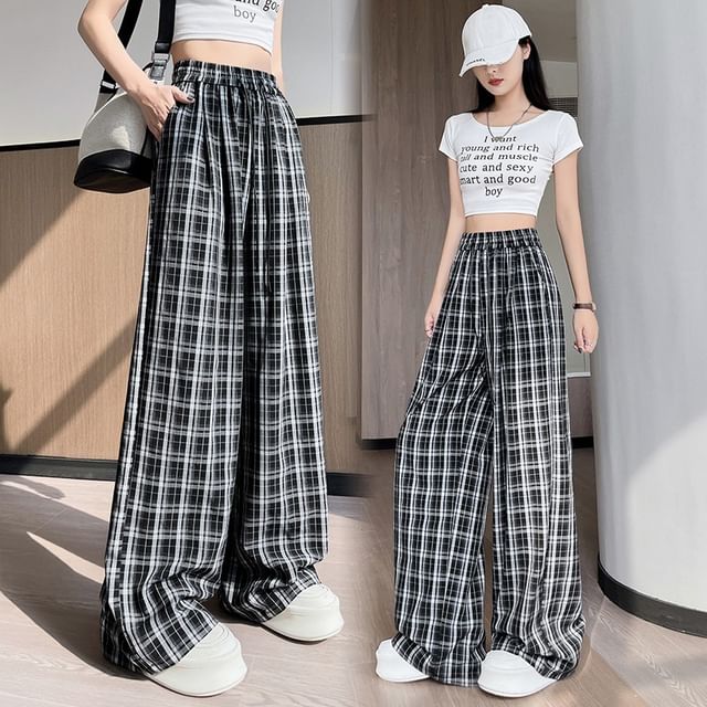 High Waist Plaid Wide Leg Pants (Various Designs)