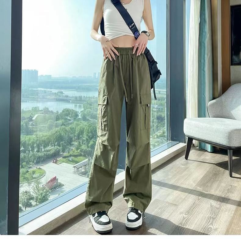 High Waist Pocket Loose-Fit Wide-Leg Cargo Pants