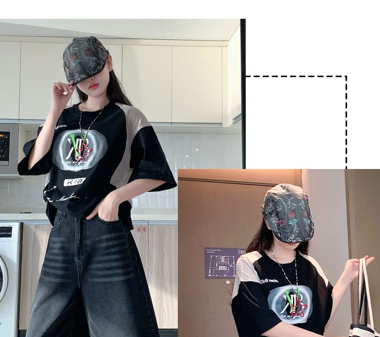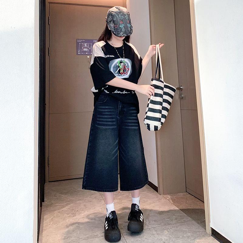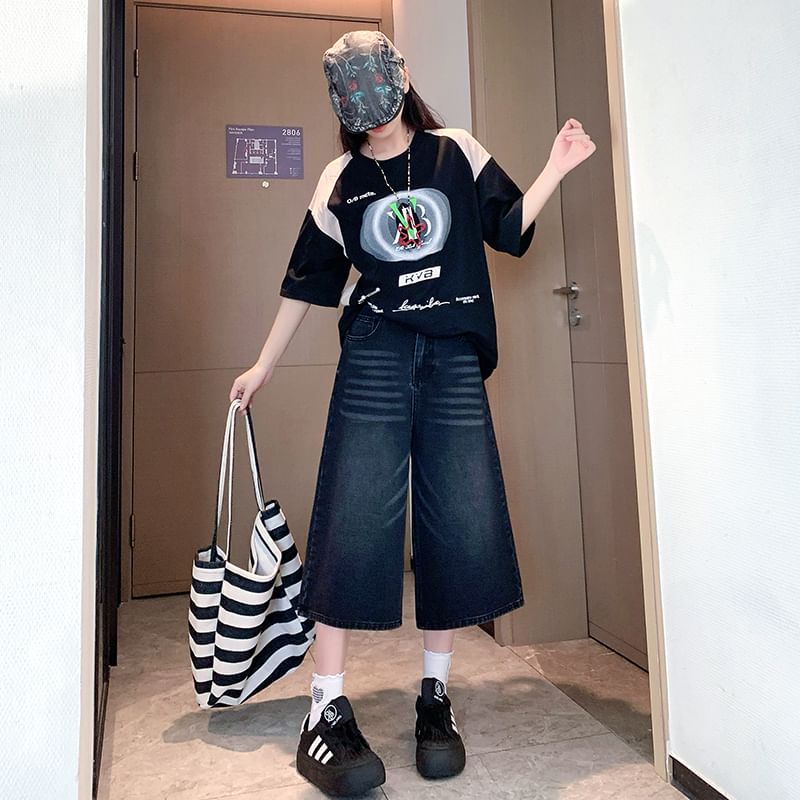 Skirt Waist Print Sweet Pleated High T-Shirt