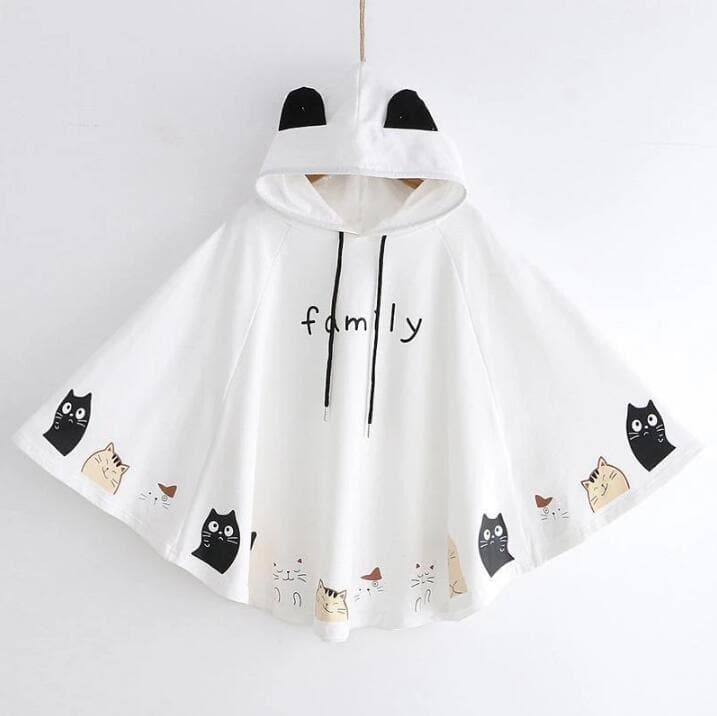SpreePicky Kitty Print Hooded Cape Coat SP14258