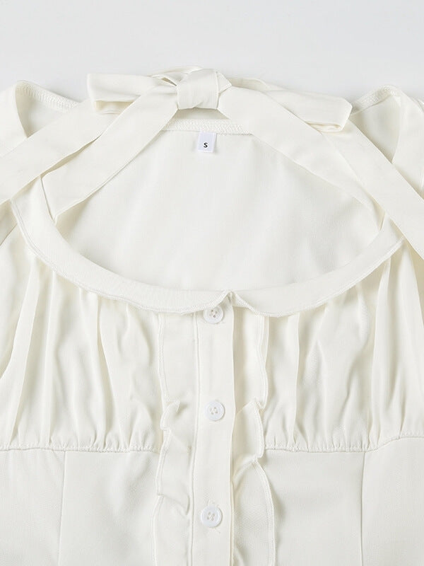 Introducing the Lavinia Halter Bow Ruffled Top, a must-have for any fashion-forward individual! This top features a stylish halter neckline and delicate bow detailing, creating a feminine and chic look. With its ruffled design, it adds a touch of playfulness to any outfit. Stand out and feel confident in this statement piece!