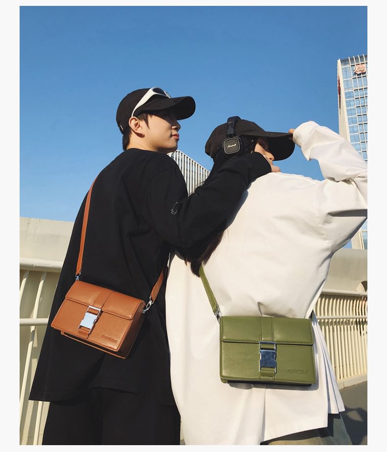 Leather Crossbody Faux Bag Flap Buckled Plain