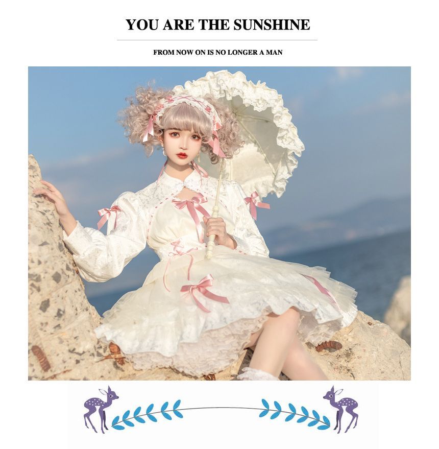 Long-Sleeve Band Collar Bow Two Tone Lolita A-Line Dress