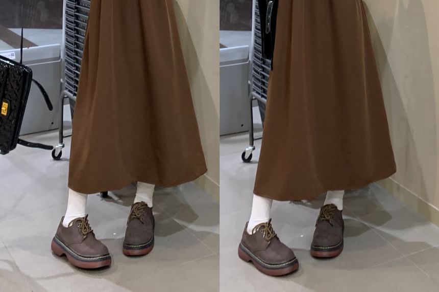 Long Sleeve Band Collar Plaid Ruffle Trim Midi A-Line Dress
