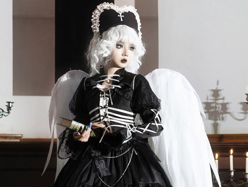 Lolita Long-Sleeve Lace Up Blouse / Spaghetti Strap Mini A-Line Dress / Set