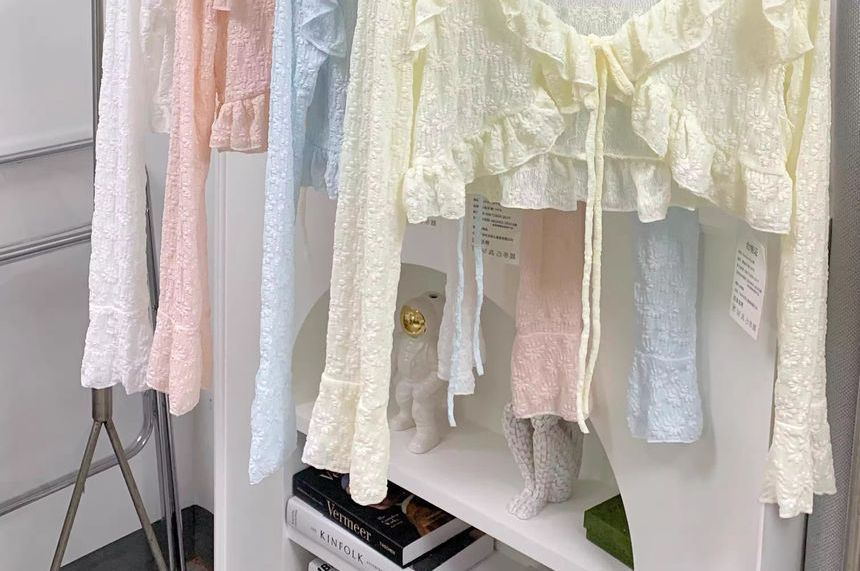 Long-Sleeve V-Neck Plain Ruffled Drawstring Crop Knit Top