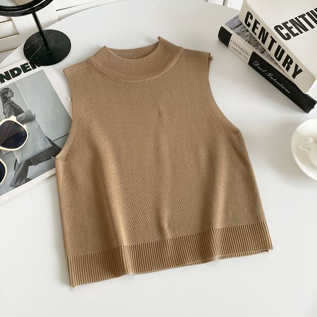 Mock Neck Plain Knit Tank Top