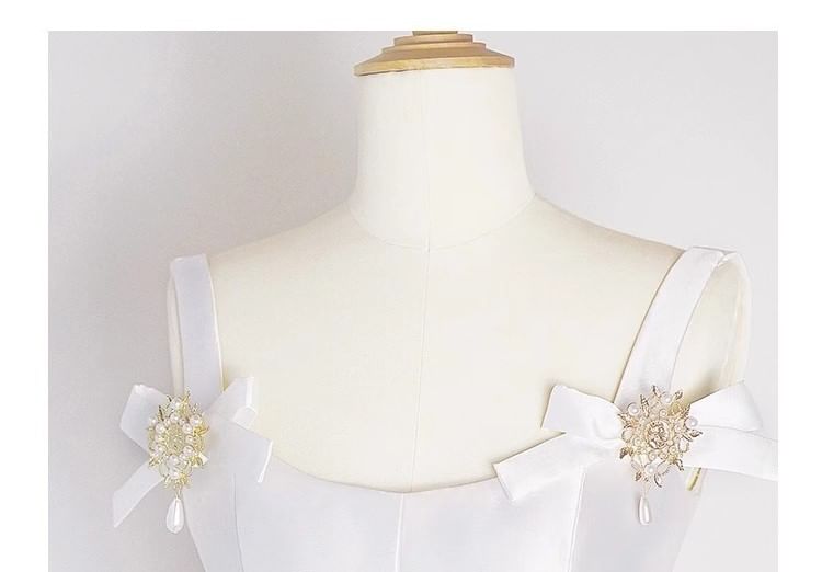 Sleeveless Floral Accent Plain Midi A-Line Wedding Dress