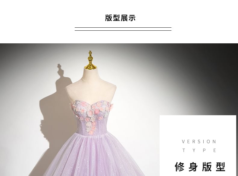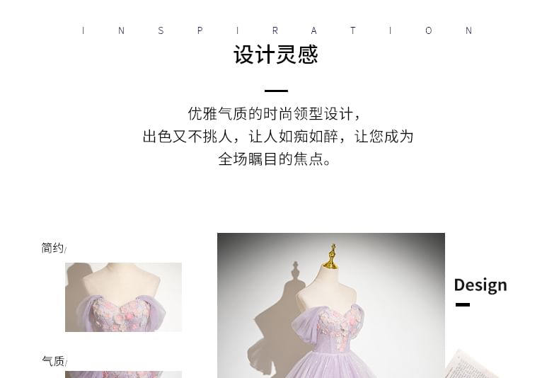 Off-Shoulder Glitter Flower Detail A-Line Ball Gown