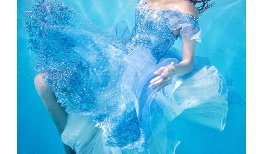 Off-Shoulder Plain Lace Panel A-Line Cocktail Dress / Gloves / A-Line Skirt / Set