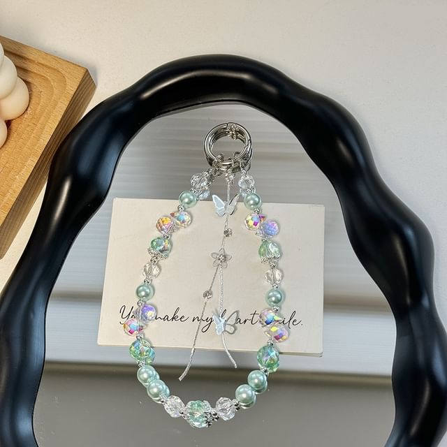 Pad Phone with Pearl Lanyard Butterfly Faux Strap Wrist