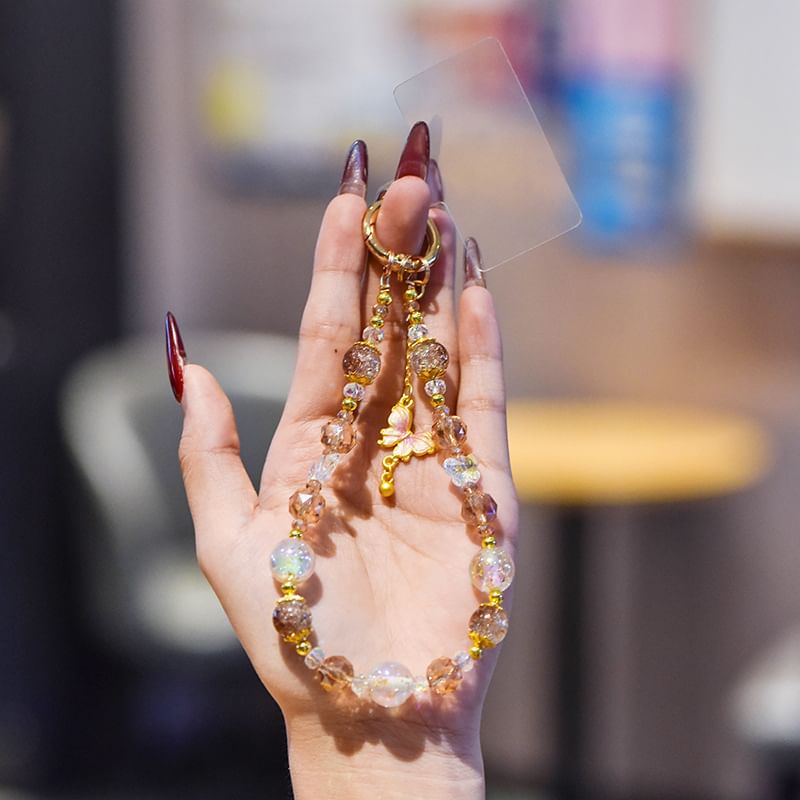 Butterfly Faux Crystal Phone Strap with Lanyard Pad