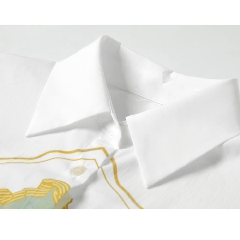 Painting Print Short Sleeve Chiffon Lapel Shirt