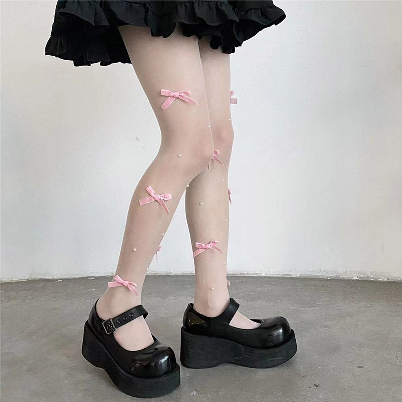 Indulge in these elegant Pink Bow Knot Pearl Decor Silk Stockings to add a touch of sophistication to your outfit. The luxurious silk material provides comfort and the pearl decoration adds a feminine and charming touch. Perfect for special occasions or everyday wear.