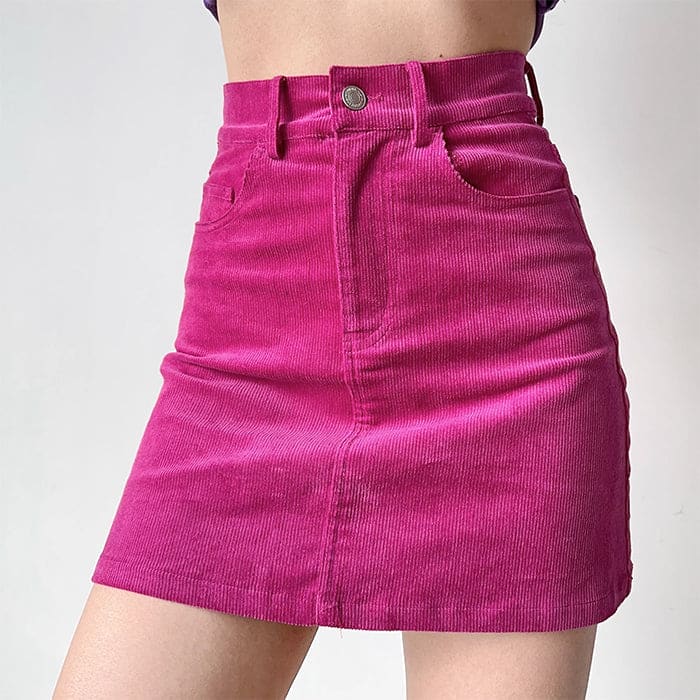 Pink Corduroy Short Skirt