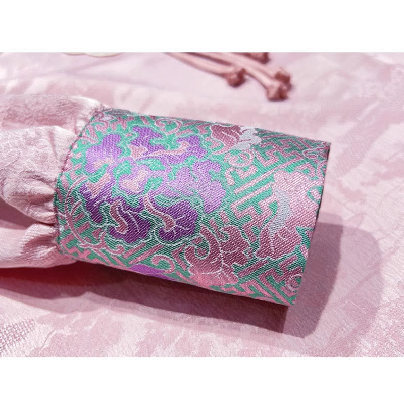 Pink Floral Embroidery Round Neck Shirt Slit Skirt Set