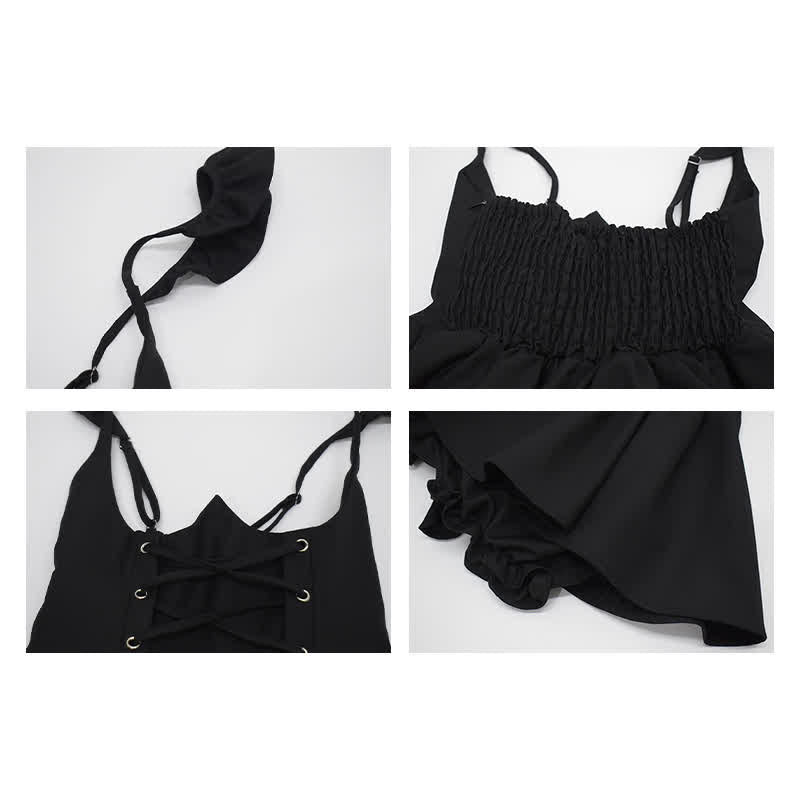 Pink Love Heart Hollow Out Bowknot T-Shirt Lace up Suspender Dress