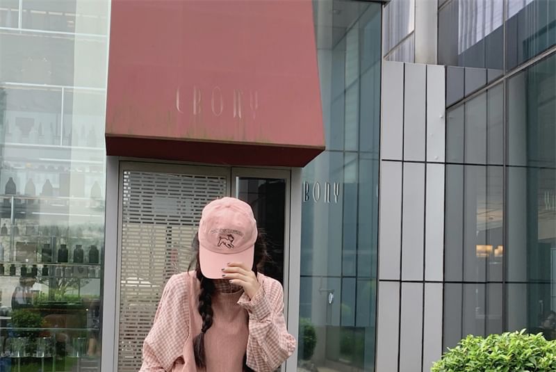 Plaid Shirt / Plain Bow Midi Overall Dress